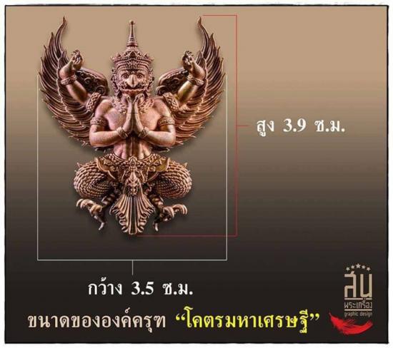 พญาครุฑทรงฤทธิ์ รุ่น โคตรมหาเศรษฐี วัดพระมหาธาตุ วรมหาวิหาร อ.เมือง จ.นครศรีธรรมราช เนื้อชนวนทองพระนคร หมายเลข ๑๘๙๘ พร้อมกล่องเดิม |