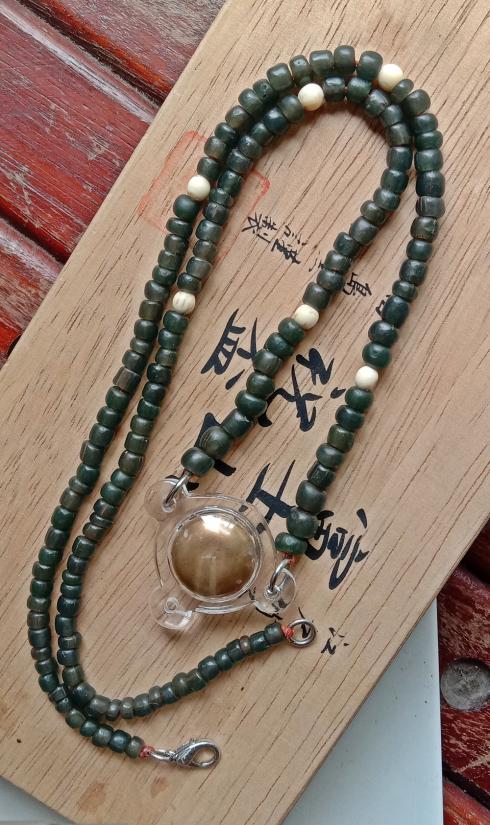 วัดใจ...สร้อยลูกปัดเก่า สีดำอมเขียว+เมฆสิทธ์เลี่ยม 3ห่วง ไม่ทราบที่ ค่ะ |