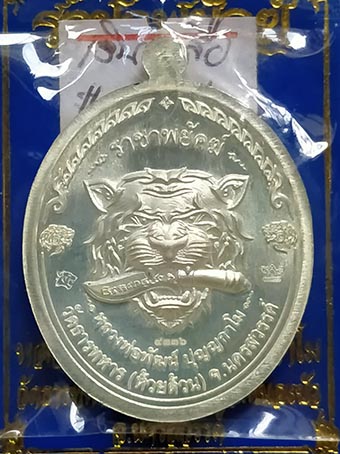 เหรียญหลวงพ่อพัฒน์ วัดห้วยด้วน "รุ่นราชาพยัคฆ์ปี" 2563 เนื้อเงินลายเสือ ลงยาเหลือง-ดำ ลงยาจีวร เลขสวย |