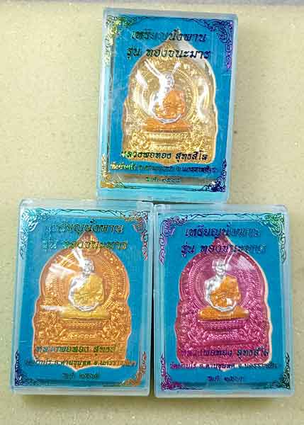 เหรียญนั่งพาน รุ่น ทองชนะมาร หลวงพ่อทอง สุทธสีโล วัดบ้านไร่ นครราชสีมา ปี 2565 3 เหรียญ กล่องเดิม |