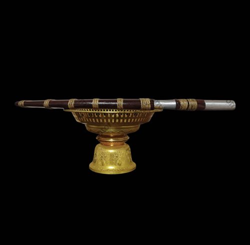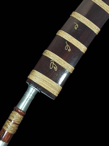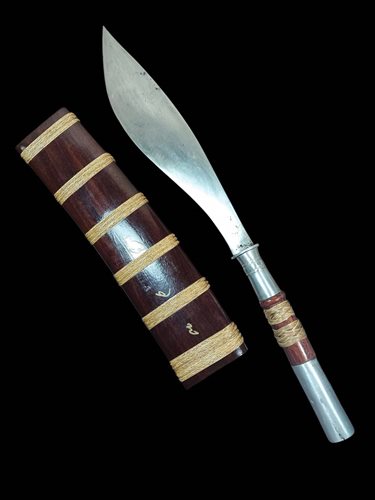 มีดหมอ ต้ามไม้ ฝักไม้ ถักทอด้วยหวายลูกนิมิตร(ฝักจารอักขระยันต์) ไม่ทราบที่ ขนาดยาวใหญ่ 23 นิ้ว