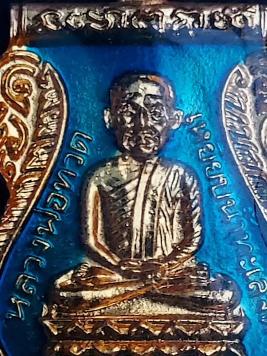 ++ไม่เคยเห็นใช่ว่าไม่มีใต้ร่มเย็นลงยา ++ เหรียญเสมาหลวงปู่ทวดรุ่นใต้ร่มเย็นบล็อกวัดพิมพ์ หน้าเลื่อนหลังใต้ร่มเย็น เนื้อกระไหล่ทองลงยาฟ้า หายากสุดๆๆๆ สายตรงชอบลองให้ราคาดูครับ