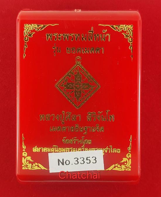 : เคาะเดียว 150 บาท ส่งด่วน ems เหรียญพระพรหมสี่หน้า รุ่น ยอ ด มเมตตา เนื้อทองทิพย์ลงยาแดง สมาคมผู้นิยมพระเครื่องพระบูชาไ ท ย จ.ขอนแก่นจัดสร้าง หลวงปู่มหาศิลา เมตตาอธิฐานจิต หมายเลข 3353 |