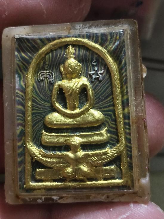 พระสมเด็จทรงครุฑ รุ่น 9 หน้า ทรัพย์มงคล จัดสร้างในโอกาสเฉลิมฉลองอายุครบ 90 ปี (ในปี 2537) และเป็นการฉลองวัดพิกุลทองได้รับการยกขึ้นเป็นพระอารามหลวง พิธีพุทธาภิเษกเมื่อวันที่ 1 ธันวาคม 2536 รุ่นนี้หลวงพ่อแพท่านทำพิธีพุทธาภิเษกเดี่ยวนานกว่าวัตถุมงคลของหลวงพ่อทุกรุ่น เนื้อผง ลายสายรุ้ง ปิดทองบางส่วน หลังรูปเหมือน มียันต์พุฒซ้อนตรงอก สวยมาก แท้ |