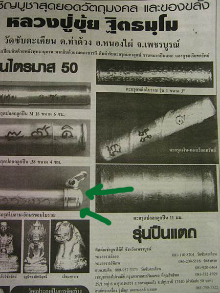 ตะกรุดใบลาน อักษรขอมโบราณ หลวงปู่ขุ้ย วัดซับตะเคียน ดอกยาว 5 ซม. ทำจากใบลานโบราณ อายุกว่า 300 ปี ด้านในมีตะกรุด 1 ดอก ปี 50 +ซองเดิม ยาว 2นิ้ว E-1 |