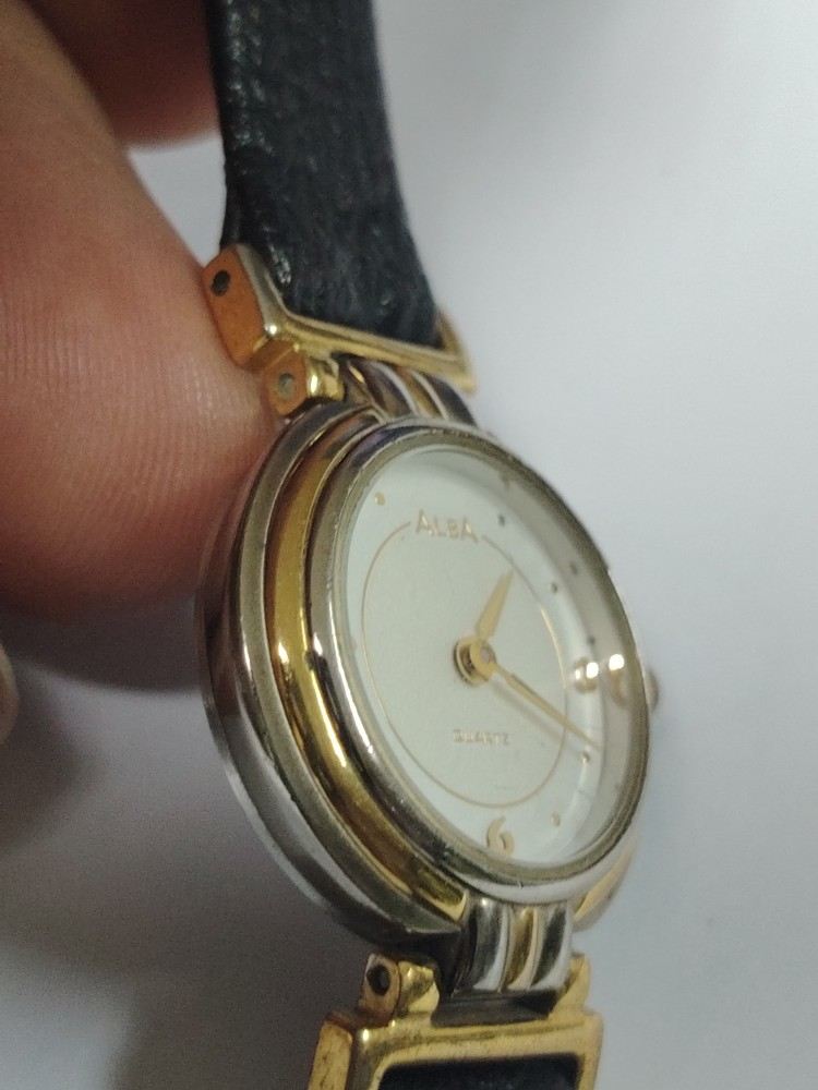 นาฬิกาผู้หญิง ALBA ขนาด24มิลรวมเม็ดมะยม สี2กษัตริย์ สายหนังเบิกใหม่ครื่องใช้งานเดินปกตืขึ้นข้อได้เลย ชอบเชิญครับเคาะเดียวแดง |