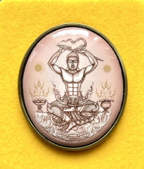 ล๊อกเก็ตสีซีเปียยันต์ทอง ประกบเหรียญพุทธศิลป์เนื้อทองเหลืองซาตินปัดเงา (แจกกรรมการ)