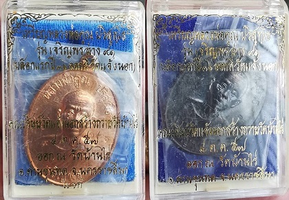 ยกคู่ 2เหรียญ 2เนื้อ เหรียญหลวงพ่อคูณ เจริญพรล่าง 91 บล็อกแรก เนื้อทองแดง ผิวไฟ + รมดำ ปี 2557 พร้อมกล่อง สภาพสวยแชมป์ |