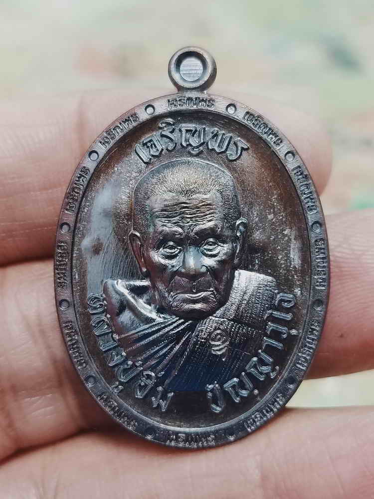 วัดใจ 100 เหรียญเจริญพร เลื่อนสมณศักดิ์ หลวงปู่อิ่ม วัดทุ่งนาใหม่ จ.นครศรีธรรมราช 2566 ทองแดงผิวรุ้ง หมายเลข 1524 กล่องเดิม |