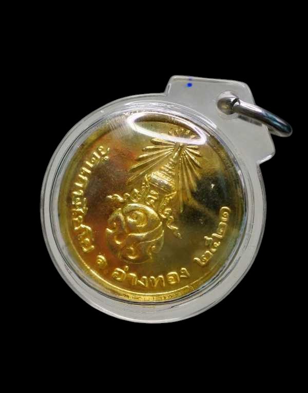 เหรียญกลมกะไหล่ทองหลัง ภปร.สมเด็จพุฒาจารย์ ( โต ) วัดเกษไชโย จ.อ่างทอง พ.ศ.2521