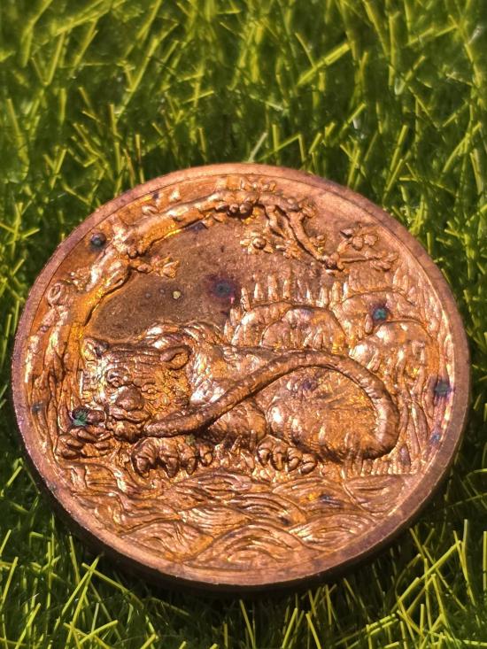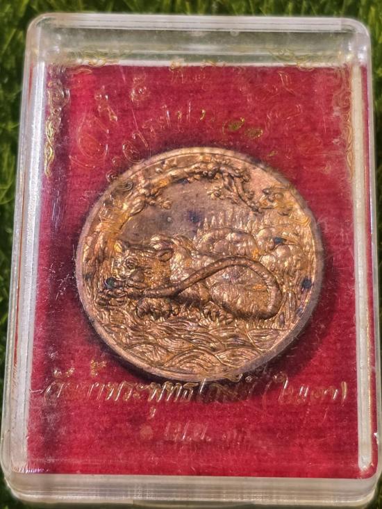 เหรียญพญาเสือนอนกิน เนื้อทองแดง หลวงพ่อประสูติ วัดในเตา ตรัง เลข 737 ปี 2560 <292>