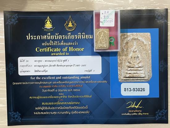 สร้างปี 2485 พระหนาสภาพสวย สมบูรณ์ ไม่หักไม่ซ่อม รับประกันพระแท้ ดูง่าย ใบประกาศรางวัลที่3งานสมาคม