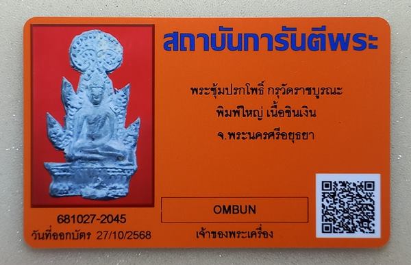 จ. - 03 พ.ย. 2568 - 20:22:17 น. (ถึงราคาขั้นต่ำแล้ว) |