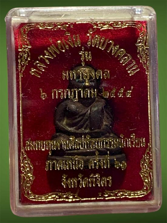 รูปหล่อหลวงพ่อเงิน วัดบางคลาน รุ่นมหามงคล ปี 54 รูปหล่อพิมพ์นิยม เนื้อนวะหน้าทอง ตอกโค๊ตในวงกลม ๘๔/๖๑ พร้อมกล่องเดิมจากวัด รับประกันพระแท้ตามกฎ |