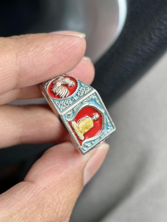 เคาะเดียว..แหวนเงินเท้ หลวงพ่อรวย วัดตะโก ปี2563 รุ่นรวย99 เนื้อเงินลงยาแดง-ฟ้า ((นิยม)) ไซต์ผู้ชาย ปรับขนาดได้ สภาพสวย พร้อมกล่องเดิม