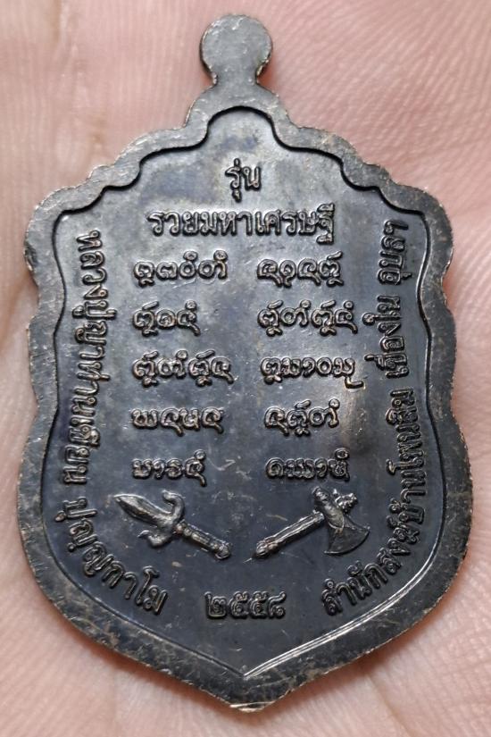 เหรียญเสมารวยมหาเศรษฐีรุ่นแรก หลวงปู่ญาท่านเขียน แห่งป่าช้าหนองขี้นก จ.อุบลราชธานี เนื้อทองแดงรมดำ แจกในพิธี |