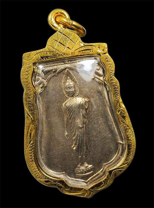 เหรียญเสมา พระพุทธ 25ศตวรรษ ปี2500 เนื้ออัลปาก้า เลี่ยมไมครอนทอง กล่องเดิม (2) |