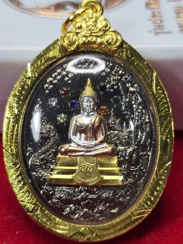 เหรียญหลวงพ่อโสธรรุ่นประวัติศาสตร์ครบรอบ 255 ปี วาระพิเศษ (วัดสร้าง) เนื้อชุบBlack rodium ฝังพลอย 7 สี หน้ากากสามกษัตริย์ เลี่ยมกรอบทองไมครอน เลข24 พร้อมกล่องเดิม |