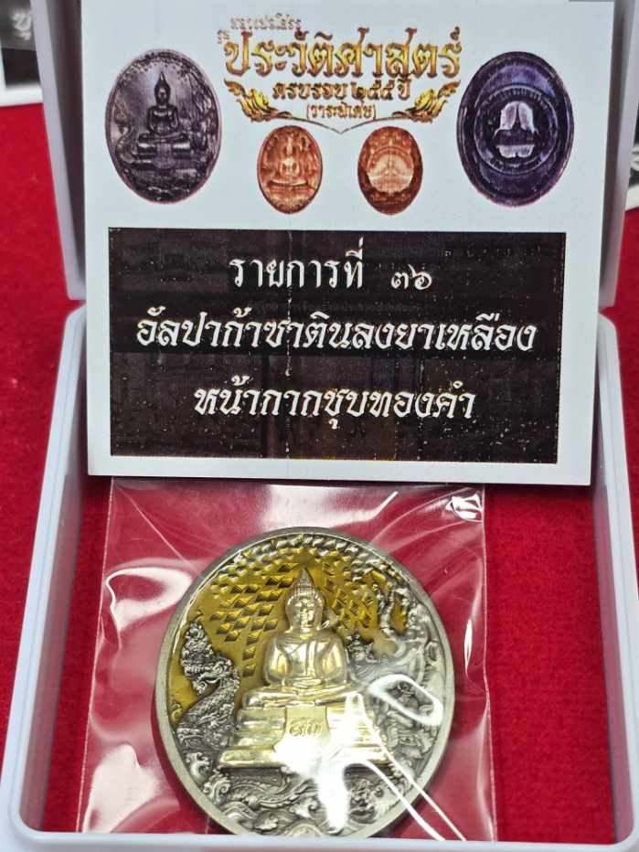 เหรียญหลวงพ่อโสธรรุ่นประวัติศาสตร์ครบรอบ 255 ปี วาระพิเศษ (วัดสร้าง) เนื้ออัลปาก้าชาตินลงยาเหลือง หน้ากากชุบทองคำ ตอกพิเศษ เลข333 พร้อมกล่องเดิม |