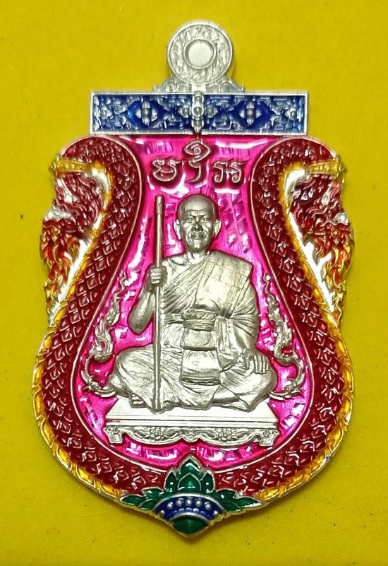 อ.ประสูตร วัดในเตา เหรียญเสมาชุบเงินลงยา รุ่นพญาเสืออุดมทรัพย์ ปี๖๘ โค๊ต-เลข๓ |