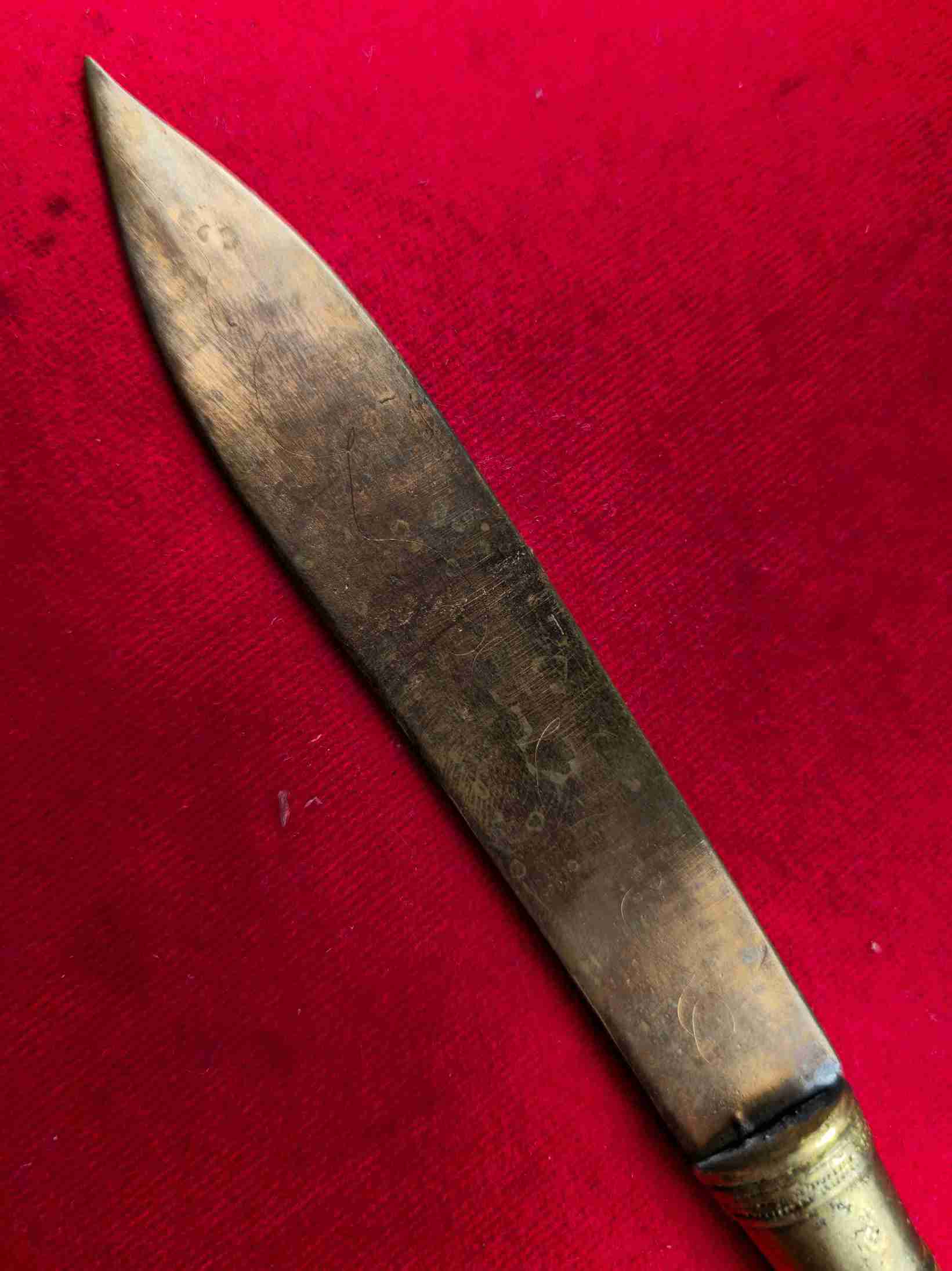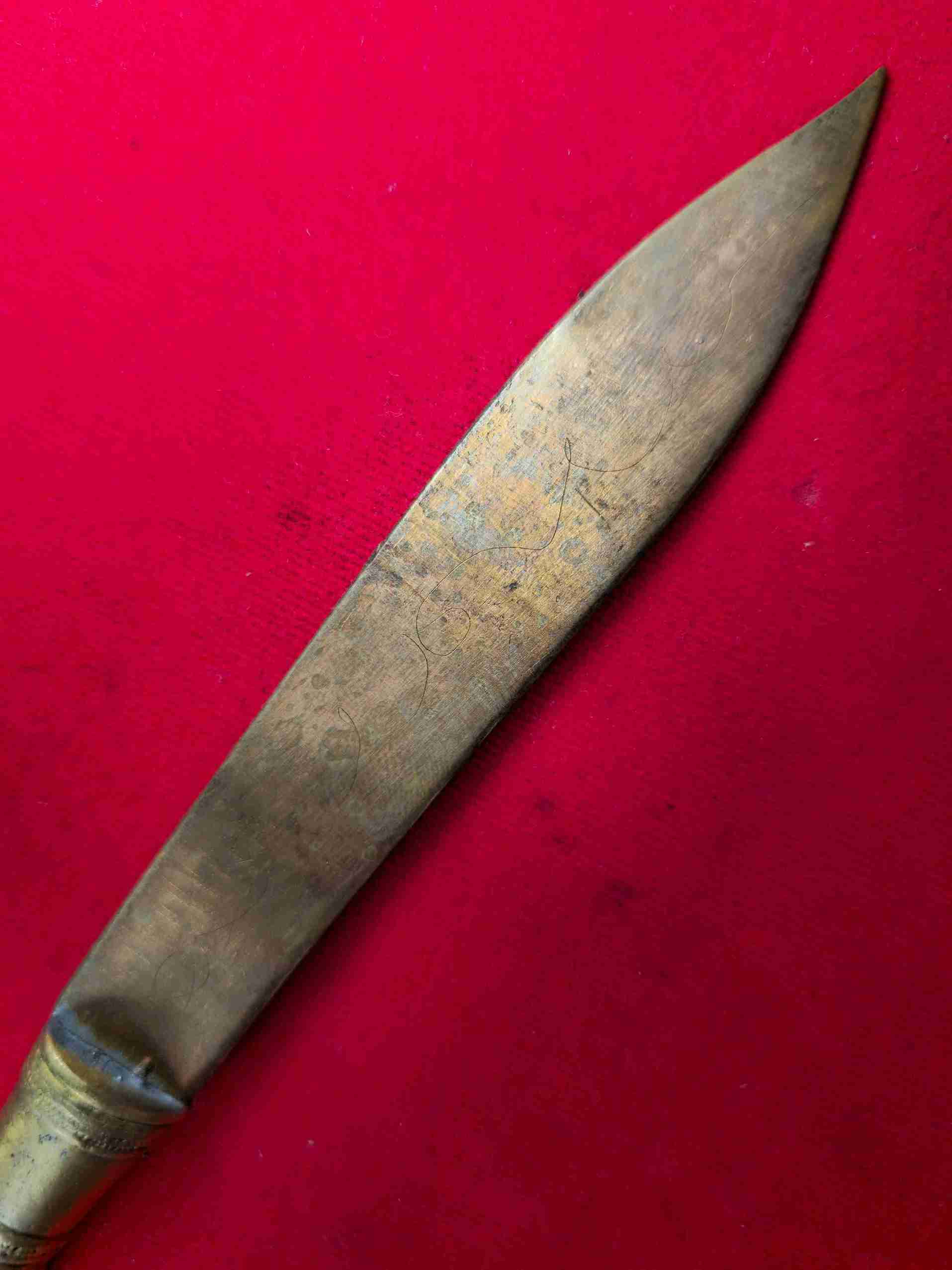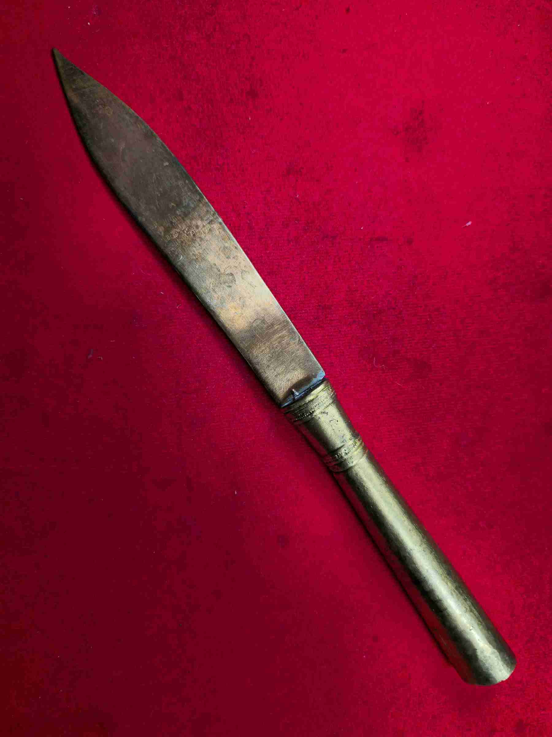 มีดหยุดมัจจุราช หลวงพ่อชำนาญ วัดชินวราราม ใบเนื้อสัมฤทธิ์มหาชนวน ด้ามเนื้อฝาบาตรมหาชน