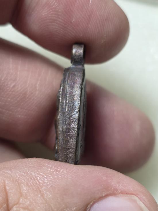 เหรียญจอบ หลวงพ่อองค์ตื้อ วัดศรีชมภูองค์ตื้อ จ.หนองคาย ปี 2505 อุดกริ่ง(กริ่งดัง) |