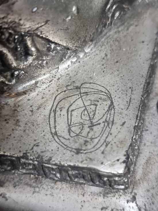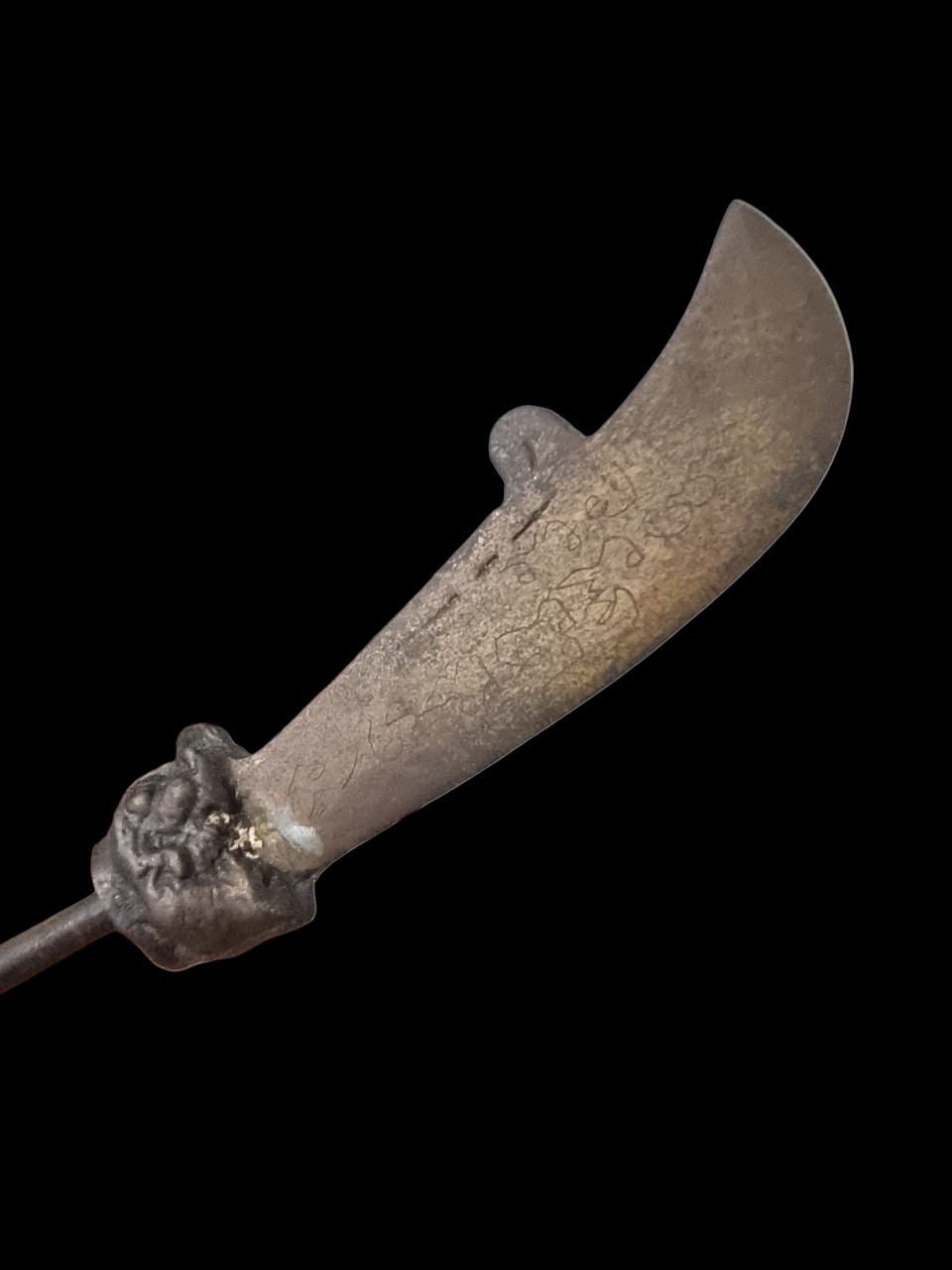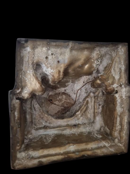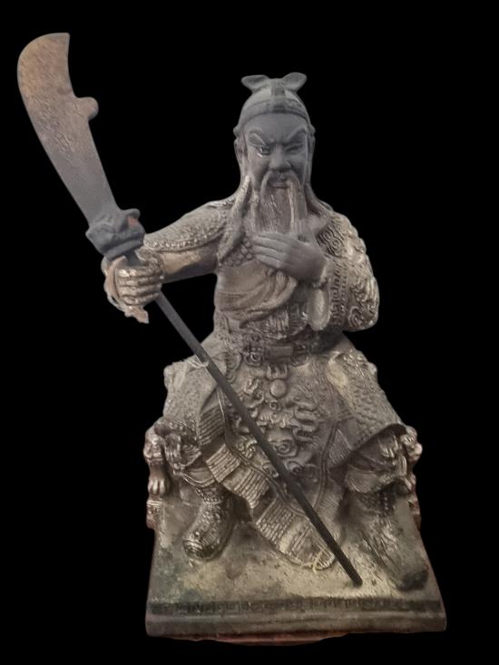 บูชาเทพเจ้ากวนอูเนื้อ สัมฤทธิ์เก่าๆผิวหิ้ง มีจาร ไม่ทราบที่ 5.5 ×10 นิ้ว