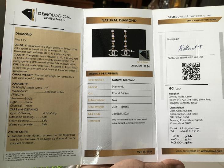 ต่างหูเพชรแท้ สินหลุดจำนำ (สภาพไม่ผ่านการใช้) พร้อมใบเซอร์มาตรฐานสากล GCI