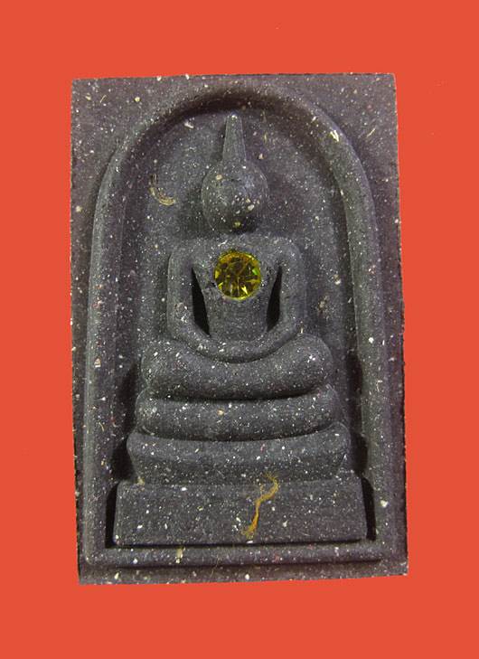 พระสมเด็จ หลังยันต์คาถา ชินบัญชร ( วัดสร้าง ) หลวงปู่ศิลา สิริจันโท ออกวัดโพธิ์ศรีสะอาด รุ่นชินบัญชร เนื้อดำ อกฝังพลอย "" ตอกพิเศษ No 1373