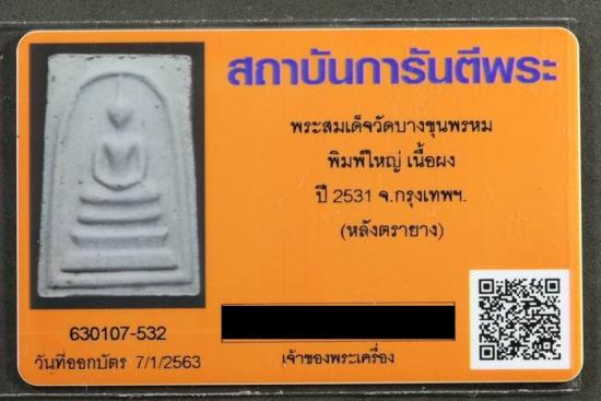 พระสมเด็จบางขุนพรหม วัดใหม่อมตรส พ.ศ.2531 เนื้อผง "พิมพ์ใหญ่ พระเกศจุด" สวย เดิม พร้อมกล่อง
