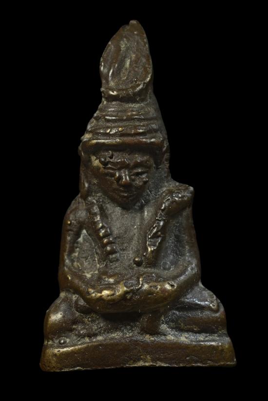 พระอุปคุต พิมพ์หมวกฤาษี ถือดอกบัว หล่อโบราณ เนื้อทองผสม มีอุดกริ่งใต้ฐาน ((กริ่งวิ่งเสียงเพราะ))
