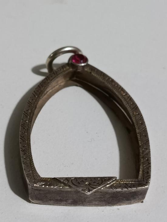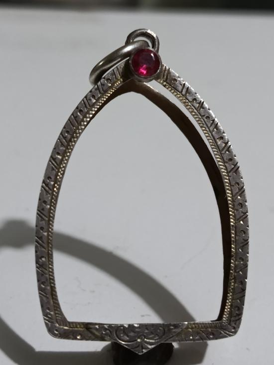 กรอบเงินเก่าแท้ ฝังพลอยแดง งานสั่งทำเก่า ใส่เหรียญเจ้าสัวหลวงปู่บุญและเจ้าสัวทุกรุ่น ขนาด 2.5 ซม.4.2 ซม.หนา 7 มม. หนาหนัก 4.83 กรัม |