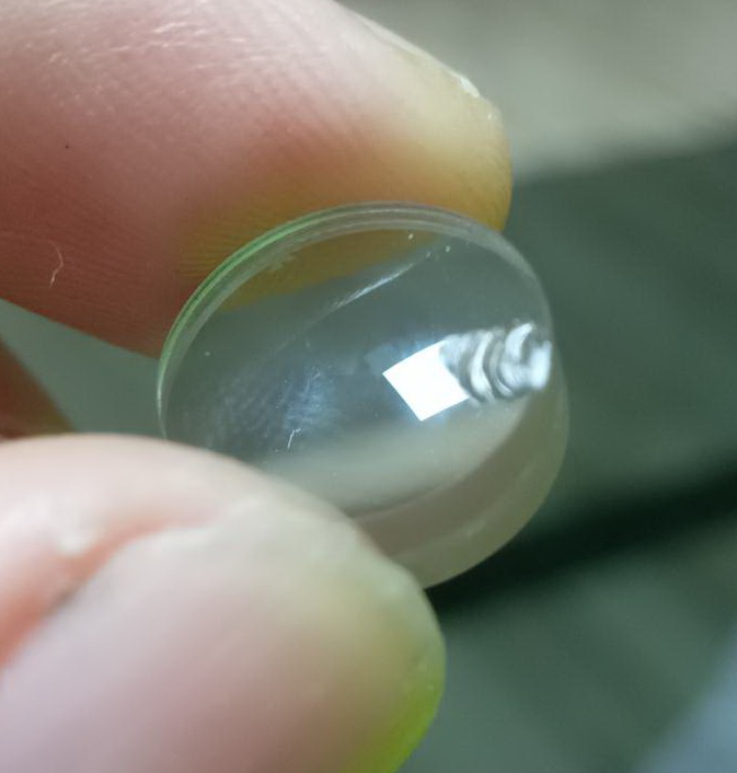 เลนส์มีรอยกระเทาะ ไม่มีรอยขนแมว ใสๆ ไม่เคลือบ ครับ