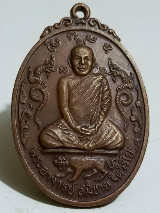 เหรียญนาคคู่หลังภูเขา หลวงพ่อสมชาย วัดเขาสุกิม จันทบุรี ปี 2521 เนื้อทองแดง พิมพ์ใหญ่ |