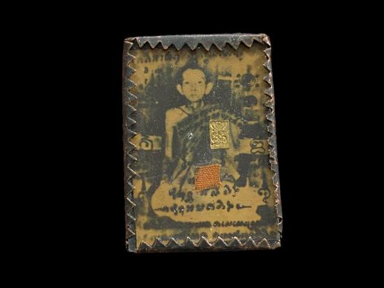 Q501. รูปถ่ายเกจิอาจารย์ยุคเก่า ฝังจีวรแผ่นทองในกรอบกระจกโบราณ (เคาะเดียวแดง) |