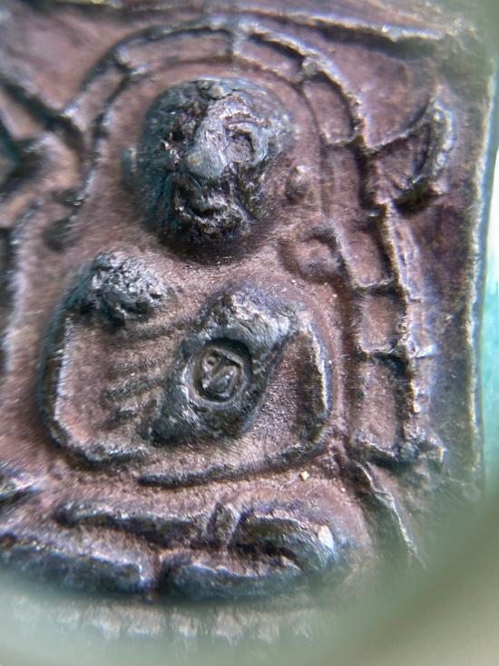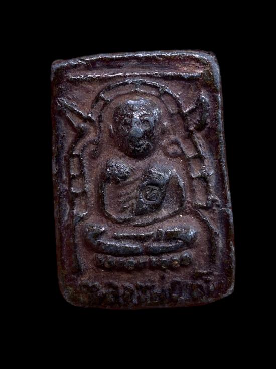 Q504. พระเนื้อชิน พิมพ์นั่งในซุ้มเรือนแก้ว หลังจารเก่า ไม่ทราบที่ (เคาะเดียวแดง)