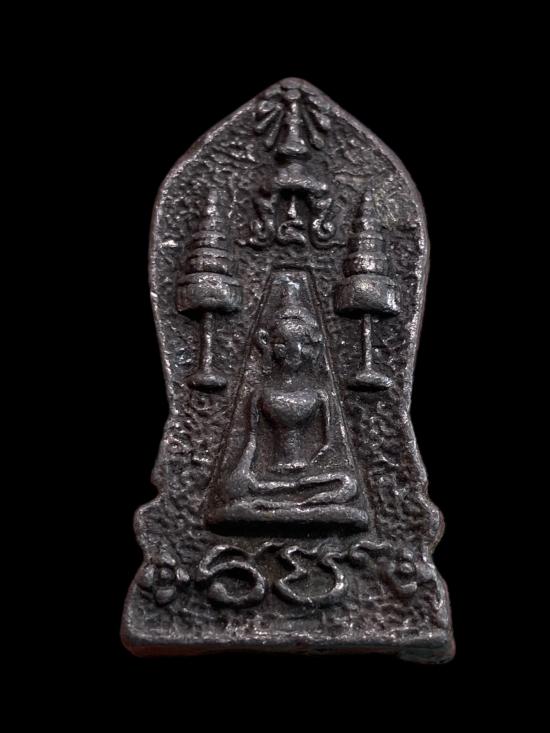 ด้านหน้าเป็นพระพุทธนั่งในซุ้มเรือนแก้ว ฐานบัวงาม