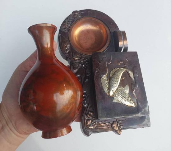กล่องเก็บเครื่องประดับโบราณ เนื้อทองแดง งานฝีมือญี่ปุ่น