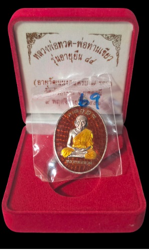 เหรียญหลวงพ่อทวด หลังพ่อท่านเขียว พิมพ์รูปไข่ รุ่นอายุยืน 84 (อายุวัฒนมงคลครบ 7 รอบ 84 ปี) ปี 2556 ***เนื้อเงิน ลงยาสีแดง*** หมายเลข๖๙ สภาพสวย พิมพ์คมชัด มาพร้อมกล่องกำมะหยี่เดิมๆ จากวัดครับ |