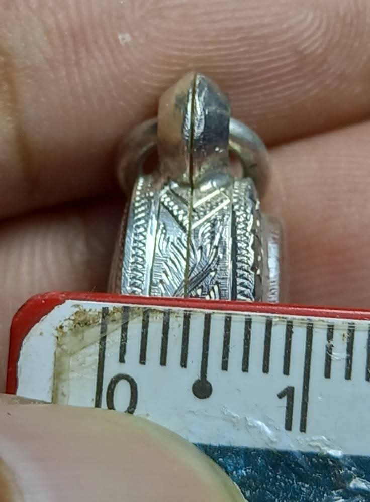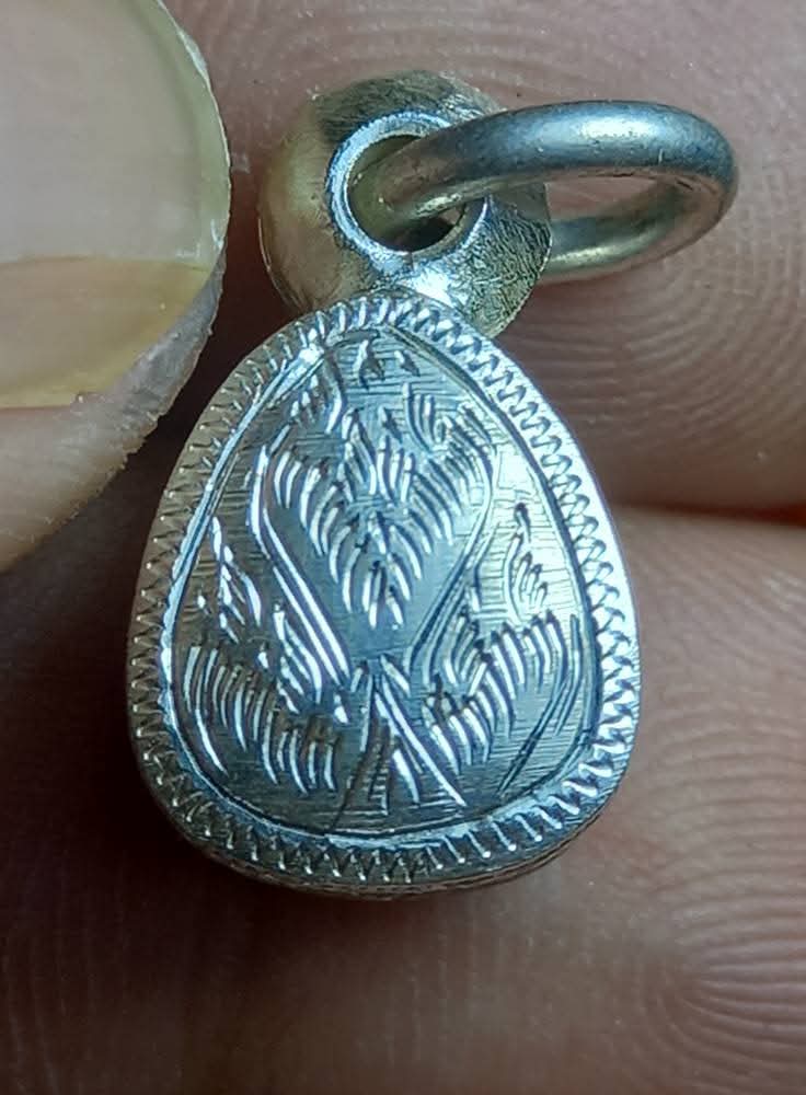 วัดใจเคาะแรก ตลับเงิน แท้ งานแกะมือ ใบเล็กๆ