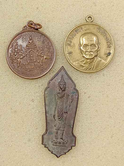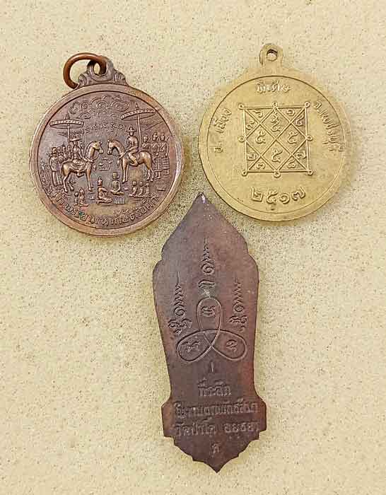 เหรียญพระผจญมาร หลังเจ้าพระยามหากษัตริย์ศึก วัดสนามนอก ปี2514 จ.นนทบุรี + เหรียญหลวงพ่อพ่วง วัดสำมะโรง ปี17 +เหรียญพระพุทธลีลา วัดป่าโค อยุธยา ปี22 พิมพ์ 25 ศตวรรษ |