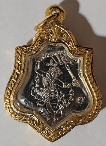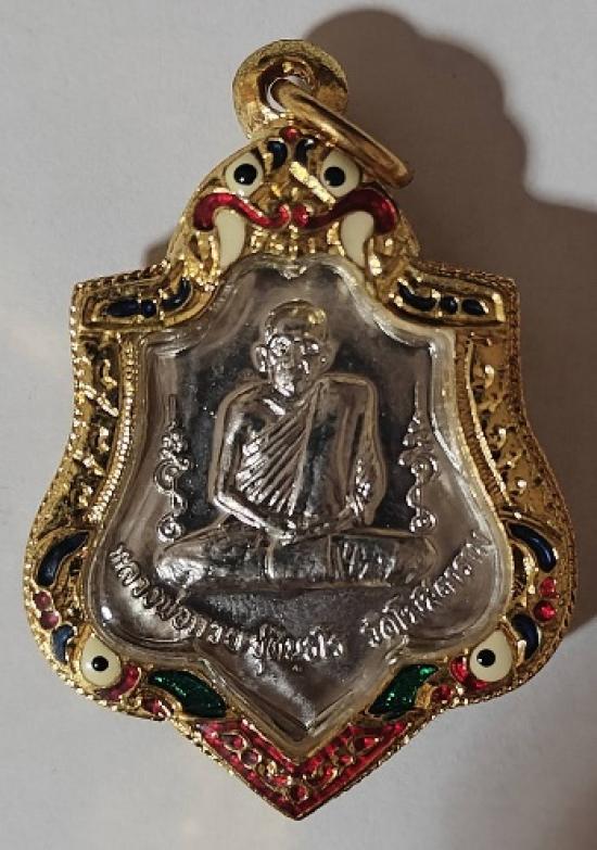 เหรียญหลวงพ่อกวย ชุตินธโร รุ่นศิษย์มีครู เนื้ออัลปาก้า หลังหนุมาน ปี 2565 เลี่ยมกรอบทองไมครอนลงยา |