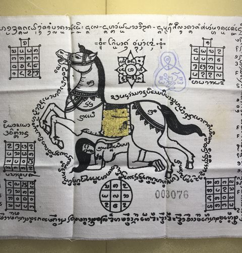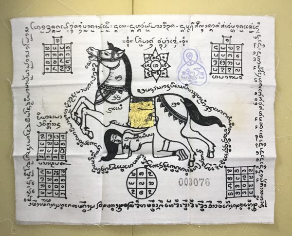 ชื่อพระเครื่อง ***เคาะเดียว***้ผ้ายันต์ม้าเสพนาง รุ่นแรก สีดำ ครูบาบุดดา วัดหนองบัวคำ จ.ลำพูน โค๊ดตรายาง # 3076