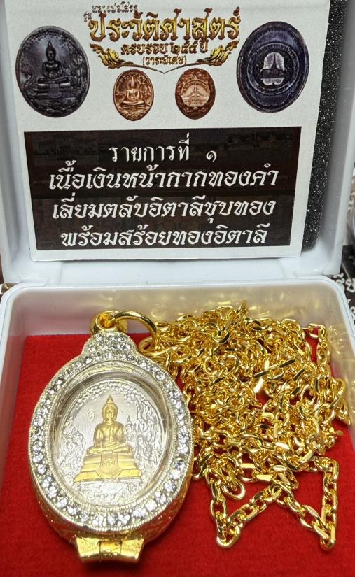 ((วัดสร้าง))เหรียญหลวงพ่อโสธรรุ่นประวัติศาสตร์ครบรอบ 255 ปี วาระพิเศษ เนื้อเงินหน้ากากทองคำเลี่ยมตลับอิตาลีชุบทองฝังพลอยล้อม พร้อมสร้อยทองอิตาลีเดิมจากวัด โค้ตเลข 5 ตอกโค้ตรวย พร้อมกล่องเดิม |