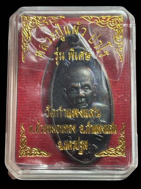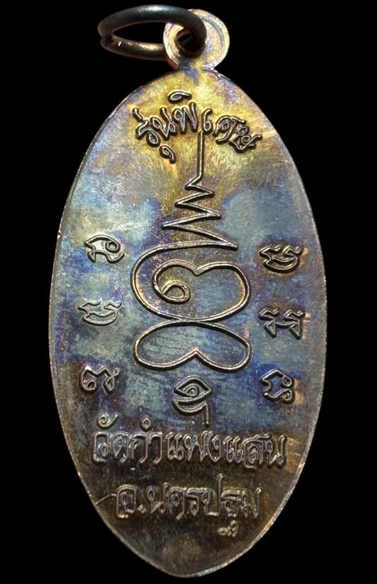 หลวงปู่แผ้ว ปวโร วัดกำแพงแสน ใบขี้เหล็ก ปี๒๕๕๗ เนื้อทองแดง ตอกโค้ต ส.ท.(สุดท้าย) ผิวรุ้งสวยสุด