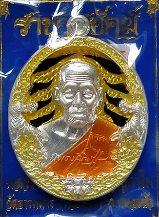 เหรียญหลวงพ่อพัฒน์ วัดห้วยด้วน "รุ่นราชาพยัคฆ์ปี" 2563 เนื้อเงินลายเสือ ลงยาเหลือง-ดำ ลงยาจีวร |