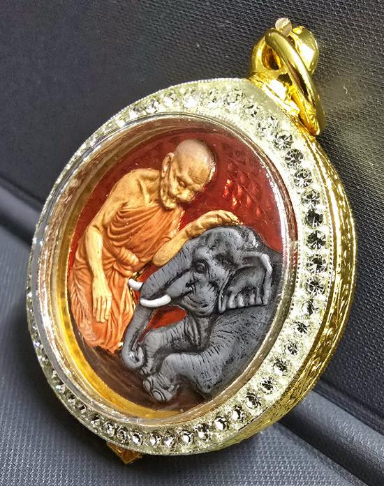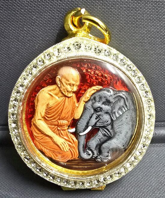 เนื้อนวะโลหะ ชุบน้ำทองคำ ลงยาแดง หน้ากากองค์พระ,ช้างเพ้นสวยมาก ใส่ตลับชุบทองอิตาลีฝังเพชร