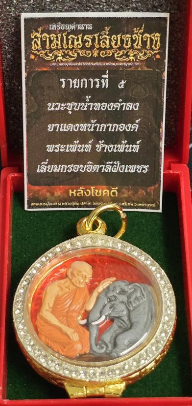 เหรียญตำนาน"สามเณรเลี้ยงช้าง" หลวปู่ฝั้น ปสาโท วัดศรีถมอรัตน์ เพชรบูรณ์ เนื้อนวะโลหะ ชุบน้ำทองคำ ลงยาแดง หน้ากากองค์พระ,ช้างเพ้นสวยมาก ใส่ตลับชุบทองอิตาลีฝังเพชร ตอก"หัวช้าง" หมายเลข ๒๑...พร้อมกล่อง |