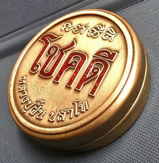 ตลับสีผึ้ง เนื้อทองแดงซาติน ลงยาโชคดี สีผึ้งปลุกเสกอุดเหรียญนากปรกใบมะขาม 2 องค์ หลังเลเซอร์ยันต์