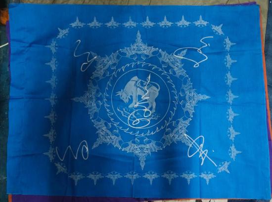 ผ้ายันต์ธงนามปี พิธีเทวสถานเขาคา ขนาดกว้าง 40 นิ้ว ขนาดสูง 30 นิ้ว อ.สิชล จ.นครศรีธรรมราช ปี 2544 ปีฉลู |